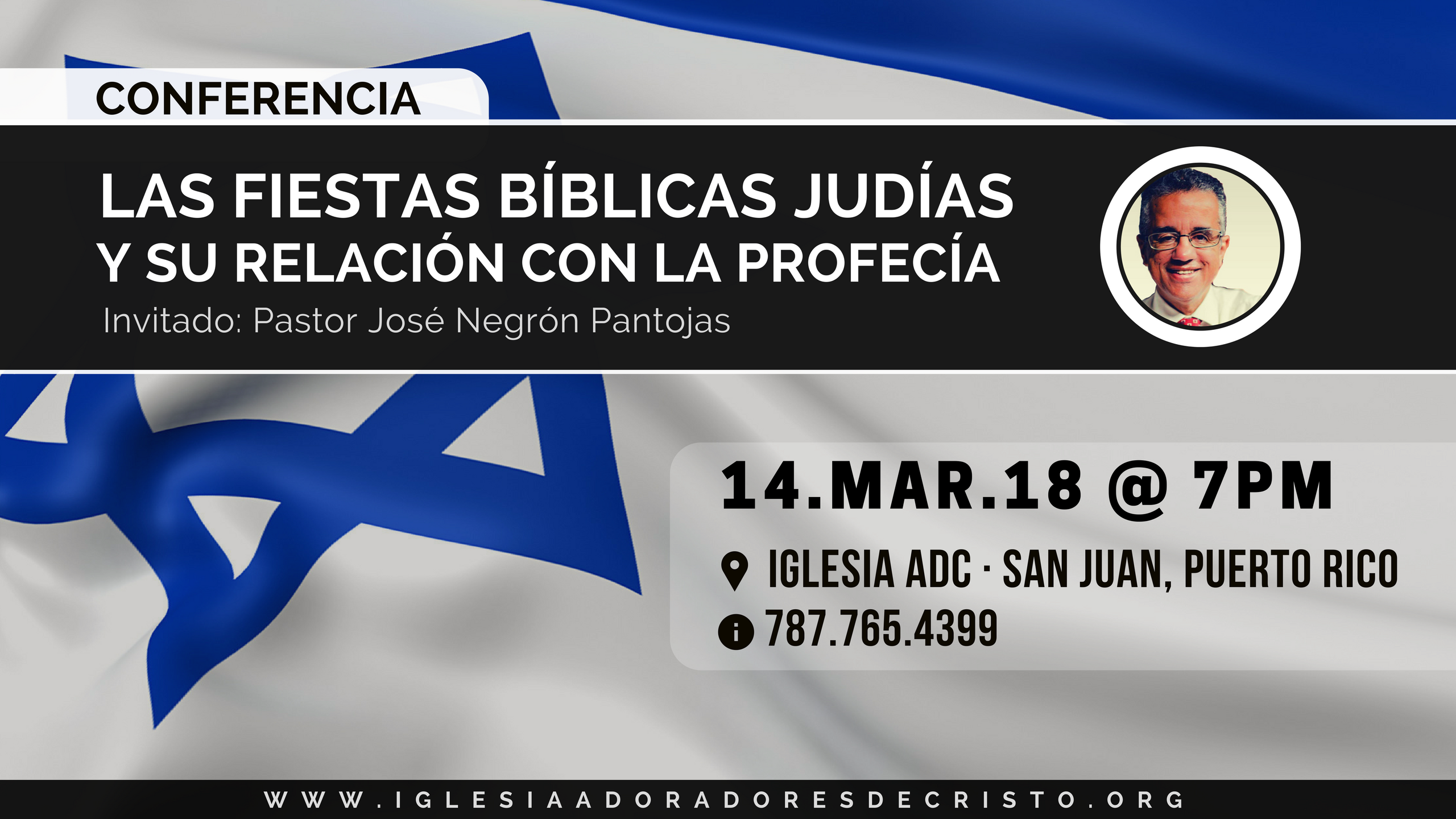 El miércoles, 14 de marzo de 2018 a las 7PM celebraremos la Conferencia Las fiestas bíblicas judías y su relación con la profecía bíblica. Tendremos como invitado al Pastor José Negrón Pantojas, conductor del Programa “Wow, qué interesante es la Biblia”. El Pastor Pantojas discutirá las 7 fiestas bíblicas y su importancia para entender los eventos de la actualidad a la luz de la Profecía Escatológica.