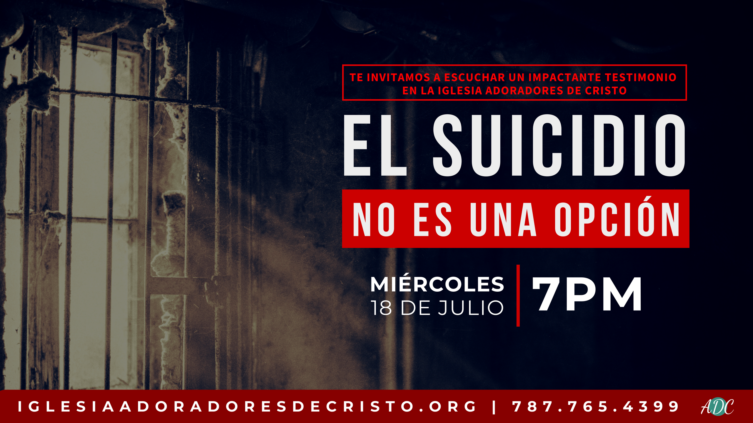 Te invitamos el miércoles, 18 de julio de 2018 a las 7PM a escuchar un impactante testimonio de una persona que venció un intento de suicidio. La Pastora Lizzie Cintrón estará entrevistando a una persona que narrará su experiencia al encontrarse en una batalla con la depresión. Conocerás esta impactante historia de victoria y superación en Jesús, como el dador de vida. Ante la tendencia de alzas en suicidios que vivimos en Puerto Rico y Estados Unidos, queremos dar conocer esta historia como un ejemplo de que el suicidio tiene consecuencias desastrosas y no es una opción a considerar en ningún momento, solo en Jesús está la esperanza de vida.